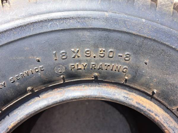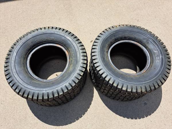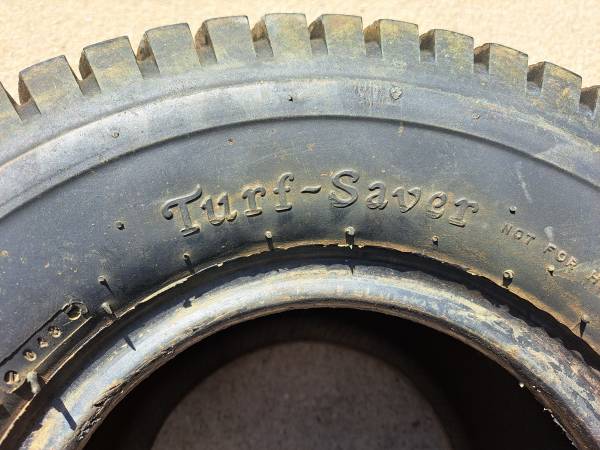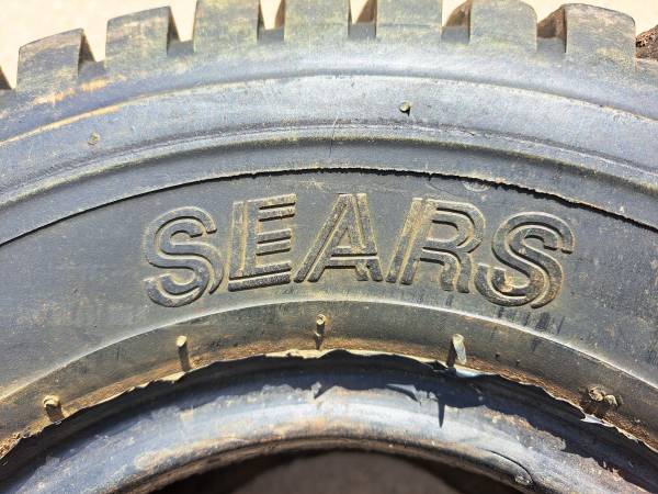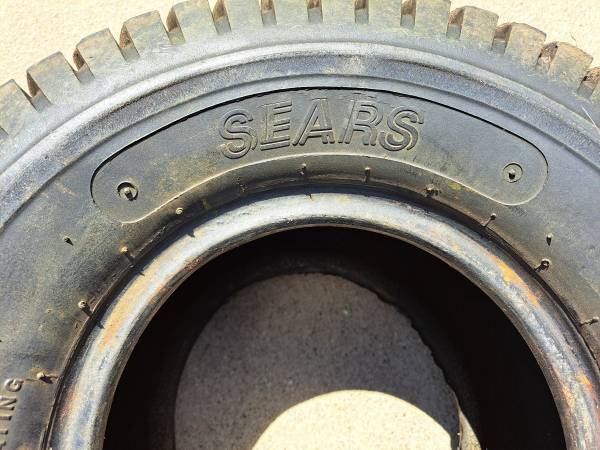 2 Sears brand lawn equipment tires. Probably made by Carlisle. Some weather checking but will work fine with tubes. $10 for both tires.
