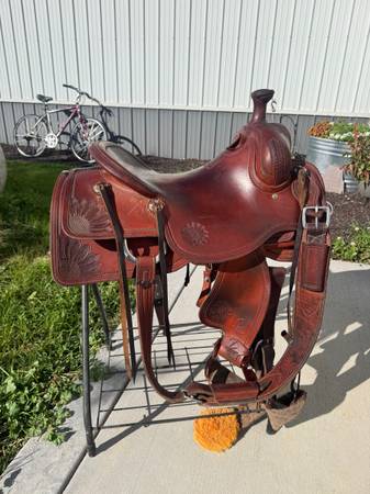 16” DC Cow Horse gear ranch cutter. Includes back cinch and matching breast collar. Fenders are youth sized for those petite riders. I’m 5’6 and they are just a few holes too short for me. Will come with different stirrups than what’s pictured. Located in Osceola WI