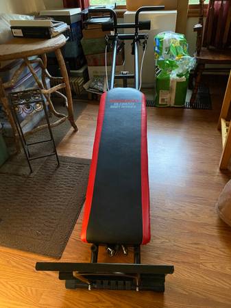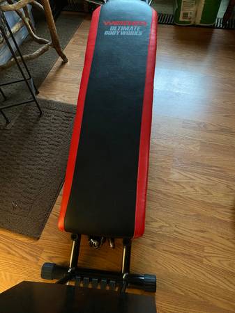The Weider Body Works is a solid home gym bench designed for strength training same as total gym. Non-smoking home. Like new. Not using it, taking up space. Folds for easy storage. $100.