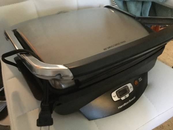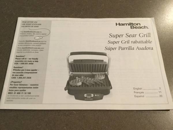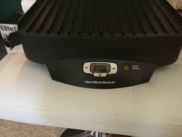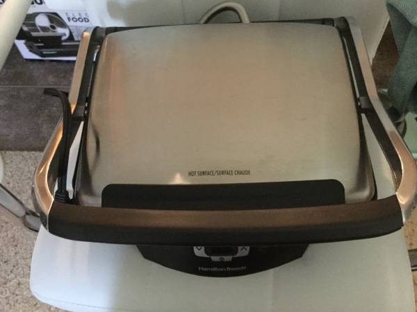 Hamilton Beach super sear grill with hot surface warning. Still in very good shape. Measures 11X13 inches.