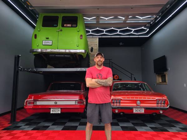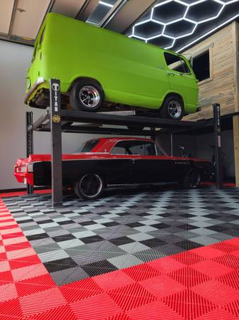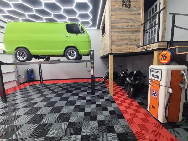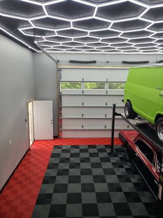 Photos are from a recent install in a new shop for a neighbor who wrenches on motorcycles and classic cars. His goal was to create a space to store his classic favorite cars between car shows and to have the mancave garage of his deams. He's quite happy. π
