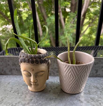 Everyone should have an aloe in the kitchen! Great for gifting! Aloe vera plants in unique decorative pots. Ceramic pots $20 each or 2 for $35, 3 for $50. Small wooden blue heart pot $15. Plants in...