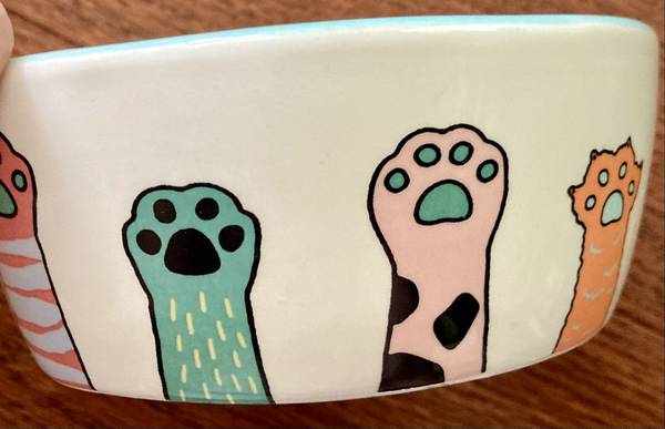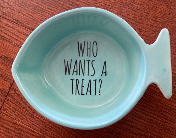 Charming bowl for kitty! Bico Fish Shaped Ceramic Bowl measures 4.5-5 inches in diameter. Excellent condition and dishwasher safe. Cash only. Pick up in Stillwater.