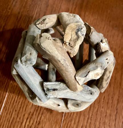 Unique handcrafted driftwood sphere for home decor. Driftwood spheres are a great natural textural addition to a mantel or on a table or shelf. Measures approximately 6 inches in diameter. Excellent...