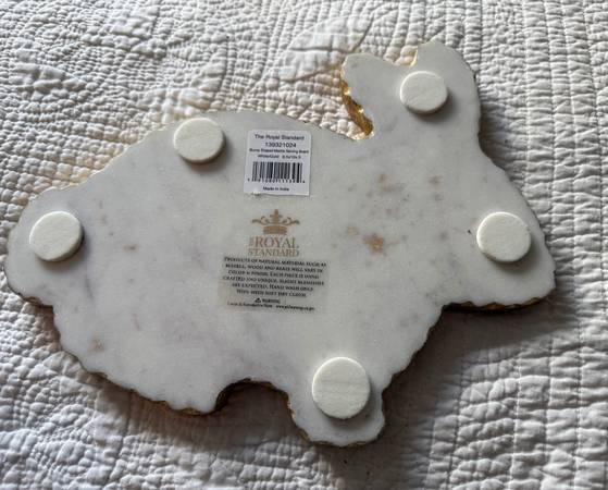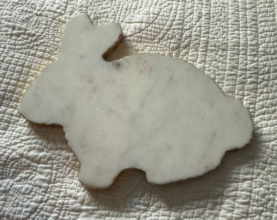 Unique, heavy, marble cutting board with gold metallic edge, in the shape of a bunny. Made by The Royal Standard of India of natural materials. Excellent condition. Bottom has 5 pads for nonslip and...
