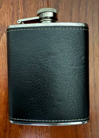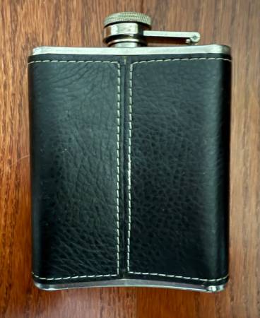 Small stainless steel flask with black leather cover. In good used condition. Cash only. Pick up in Stillwater.