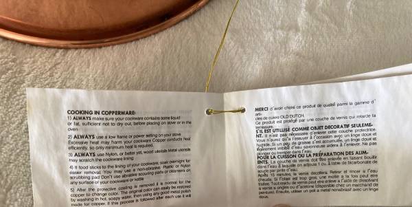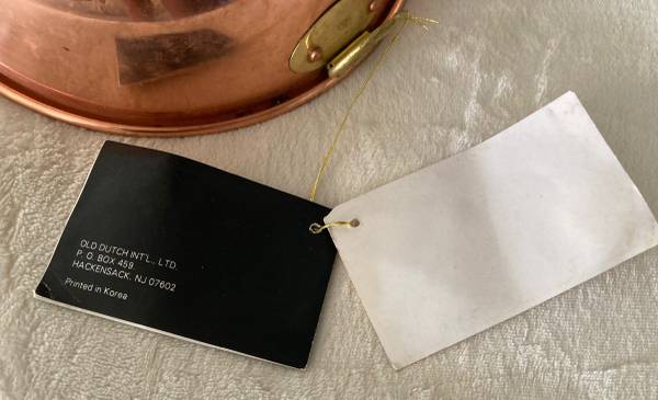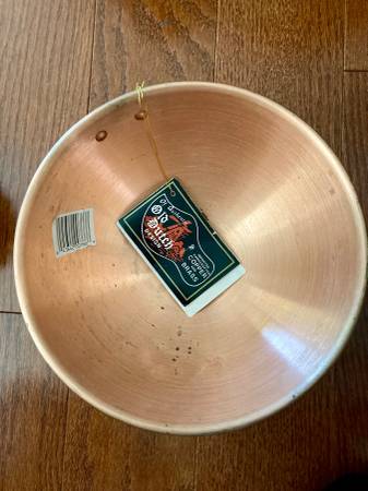 Great for display or whipping egg whites! Old Dutch Intl. solid copper mixing bowl. It is new with tags but appears to have sustained a small dent. See pic #3. It doesn’t affect its beauty or...