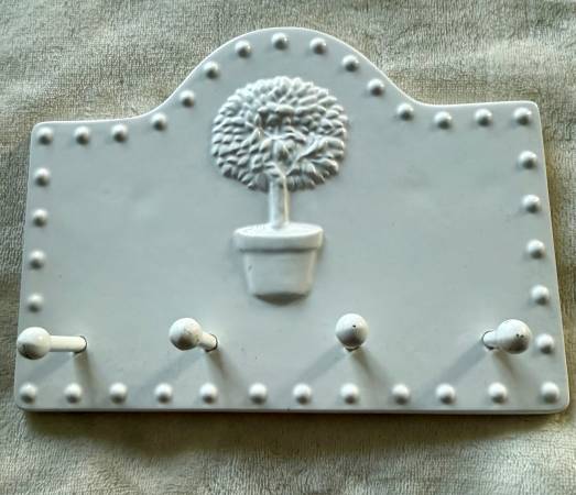 Decorative ceramic wall hook with tree design, perfect for keys or small items. In excellent condition. Bright white. No chips or cracks. Measures approximately 8x6.5 inches. Cash only. Pick up in...
