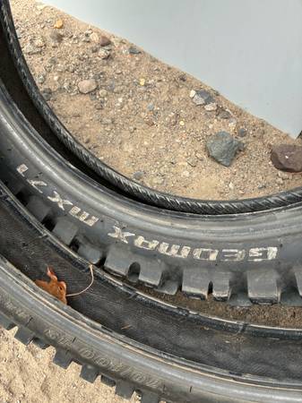 Dunlop Geomax Dirt Bike Tires 70 100 19 and 90 100 16. Condition is good. My son replaced due to his desire for a more aggressive tread.