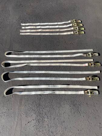 8 vintage HD ratchet straps used in HD motorcycle shipping crates.