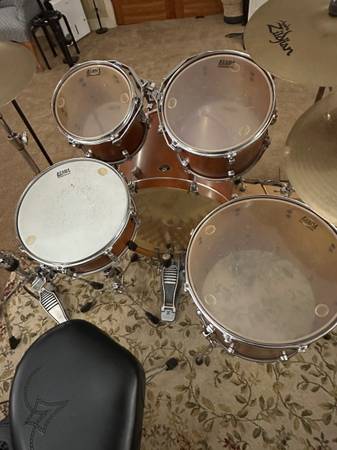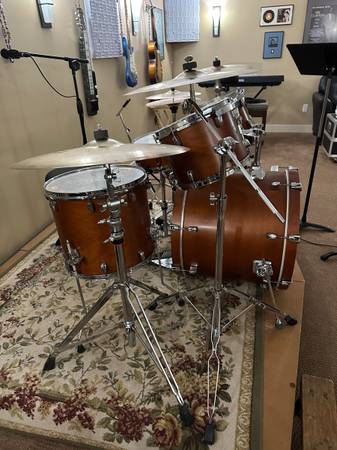 Beautiful and awesome sounding Tama Silverstar all birch drum kit. Pro quality 3-Yamaha and 1- Tama cymbal stands. Yamaha kick pedal. Tama 1st Chair throne. You will not be disappointed no matter your skill level, pro or novice.