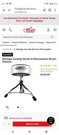 Orange County Drum and Percussion Drum Throne - excellent condition. With tax $207 new $125 / FIRM Please TEXT, or call and LVM. No emails please / no reply.