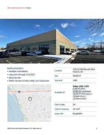 29,800 SF Warehouse & 8,500 SF Office Available Now for Sublease! (Hudson)