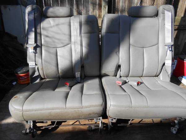 2-SEATS OUT OF A 3RD ROW LEATHER ESCALADE GRAY /SILVER COLOR LEATHER SIX51 436 3936 WILL DELETE WHEN SOLD STREET ROD /RAT ROD SEATS WITH BUILT IN SEAT BELTS