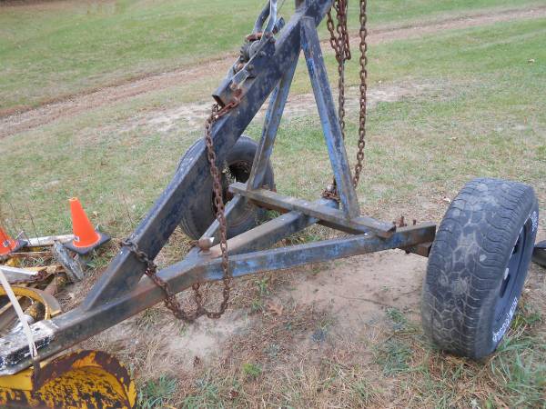 THIS LOG TOTER HAULS HEAVY LOGS BY LIFTING THE FRONT OF THE LOG OFF THE GROUND