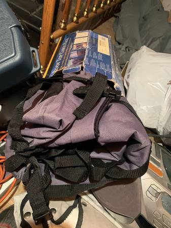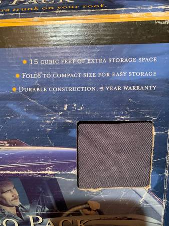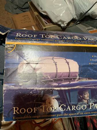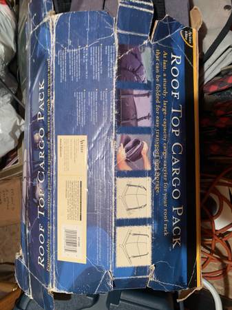 Older but never used roof top carrier. Still in box as you can see. Comes from the days of quality built heavier duty products. Asking $25. .