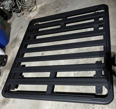 Super clean Yakima LocknLoad cargo platform. Size K 55x49x4". Includes Yakima LocknLoad SL Adapters (4), Yakima Timberline Towers (4), and unopened Yakima Awning T-Slot mount.