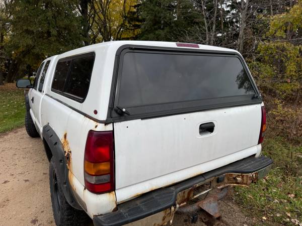 Call or text only. Black truck is a 2004 Silverado White ones 2001 Sierra Blue ones 2004 2500 2wd 6.6ft topper is in nice shape Blue bed is usable but has rust Blue pass fender is decent White...