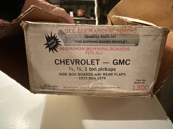 DEE-ZEE Mfg. Aluminum running boards for Chevrolet - GMC 1/2, 3/4, 1 ton pickups 1973 - 1979 Original parts. 37" long x 8" wide The raised tread design provides secure footing Some scratches from...