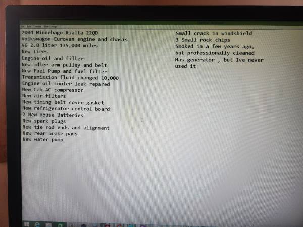 Class b rialta in good shape. 135,000 miles. V6 2.8 liter runs great transmission great.