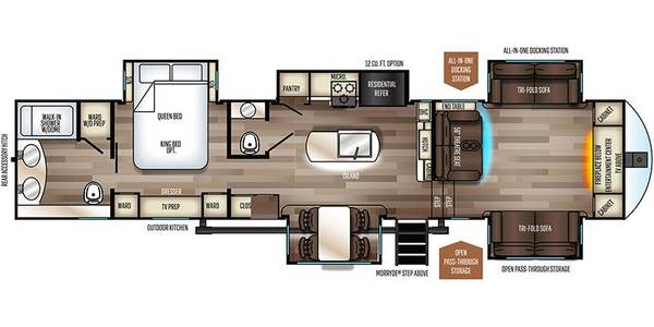 • Rear Master Suite with king bed, large wardrobe, and washer/dryer prep