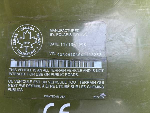 Hello Im Letting go of my 1998 Sportsman w/plow. 1248 milesor 253 hours. Im the second owner purchased in 2014. I have only used to plow driveway and use in yard, last year carb rebuilt, new batterie, new belt ,installed complete new 3000lb winch rope style. also xtra 2500lb back up winch with steel cable. always used polaris oil and parts. everything works, always stored in heated rodent free enviroment. Comes with a new Polaris oil change kit. New oil and filter at 1198 miles