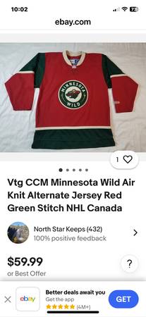 CCM Minnesota Wild Hockey Jersey. Adult size Medium . NO stains or tears. Official NHL Licensed Jersey. Yes, it’s still available I’m about 5 minutes north of Hastings $25 💵 cash only No checks or...
