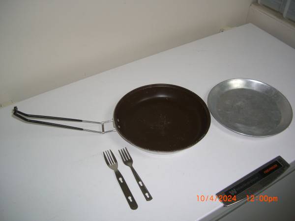 Folding non-stick frying pan/plate w/ 2 forks. $5. Call ortext 651 two33-885nine.