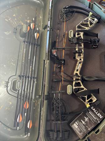 Brand new bear legit. Tore my shoulder up. I’m just going to stick to the crossbow. Comes with the whole package. Case, bow, arrows, release, broadheads. 375 obo Six five 1- 48five-76five5