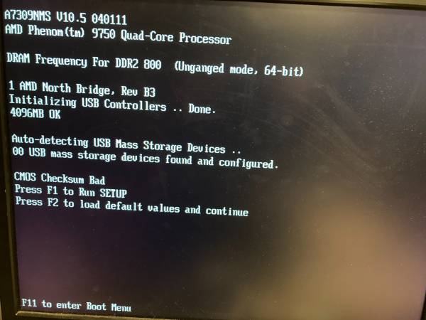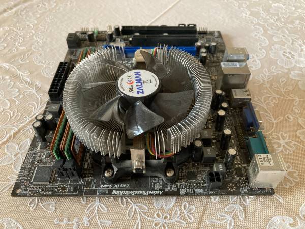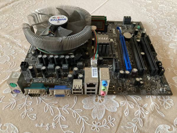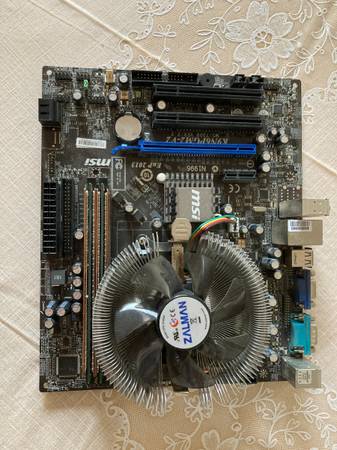 Tested to boot to BIOS. Motherboard is: MSI-7309 Ver 2.2 (no IO shield) CPU: AMD Phenom 9750 Quad-core Nice Zalman CPU fan Memory: 4 Gb DDR2 $5, no offers please, pickup in Woodbury