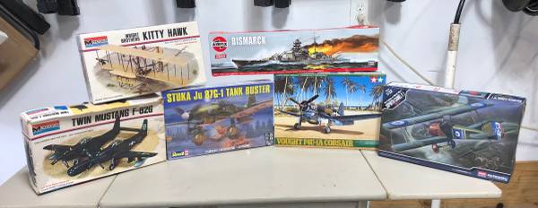 For sale are a variety of plastic model kits. Subjects range from automotive to WW2 aircraft to Cold War military aircraft. Prices range from $15 to $50 depending on size and rarity. Most of the smaller aircraft are $15 as are any open box auto. Any plastic wrapped auto are $20. Cash or PayPal accepted (cash preferred). Can ship by USPS Ground Advantage for additional charge.