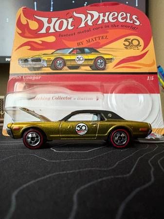 These Hot Wheels cars are rare collectables from Hot Wheels 50th anniversary in 2018. 4 of 6 cars are unopened and two of them are unused, in perfect condition. 50th anniversary 1968 Cougar,...