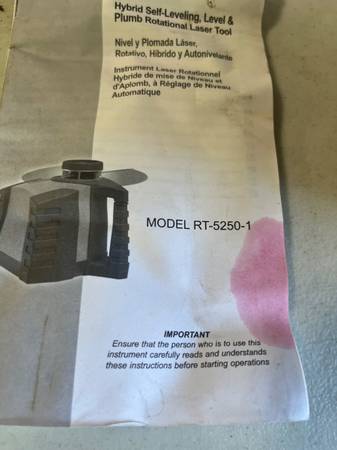 Hybrid Self-leveling Level line level & Plunb Rotational Laser Tool. Model RT-5250-1. Comes with fully pad case. $250 cash or Venmo. I also have a tripod, $40. And a scale stick, $25. More ads...