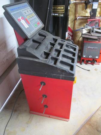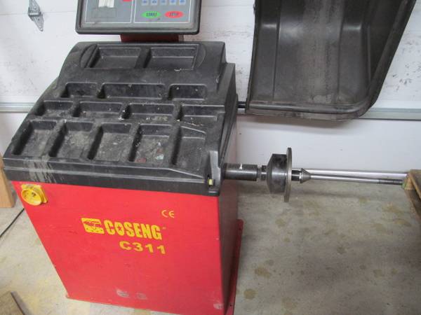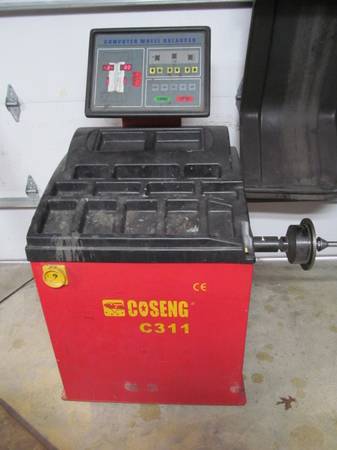 Coseng model c311wheel balancer, will do automotive and motorcycle tires(thats what I used it for)comes with all the set up cones and arbors(operating manual too) for auto or m/c,but it needs a drive belt300.00.Snapon parts washer works perfectly, too big for my shop,I paid stupid money for this thing(SNAPON)500.00 or reasonable offer
