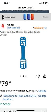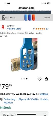 Arbiter missing ball valve handle wrench. New on one side. A little scuffed on the other. Yes, it’s still available I’m about 5 minutes north of Hastings Right off hwy 61 $10 cash 💵 only ($50 + off...