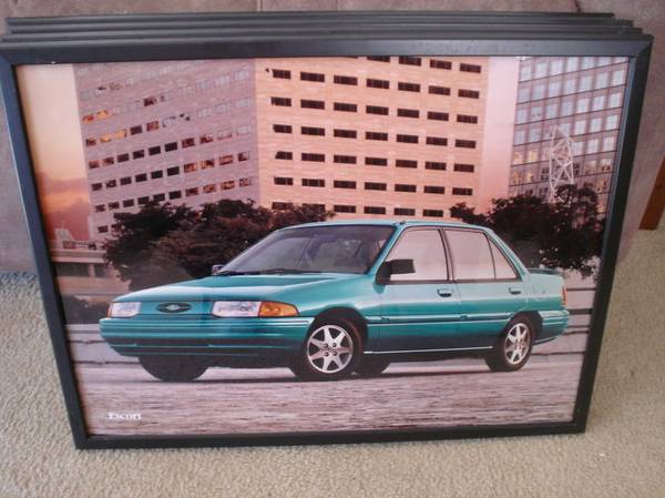 Here are 5 Ford showroom new model display frames. All 4 sides have spring loaded hinges so they can be easily opened and changed out. They come with high gloss pictures from the company Henry Ford built. Or you could put in pictures from the company Hugh Hefner built.
