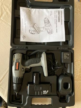 I believe the drill has never been used, although it has been sitting in a house for some time. Works. Includes the drill, battery and battery charger, original case. $10, no offers please, pickup...