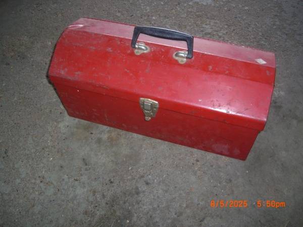 Portable metal tool box with removable top tray. Measures 21 x 9 x 9". $10. Call or text 651 two33-885nine.