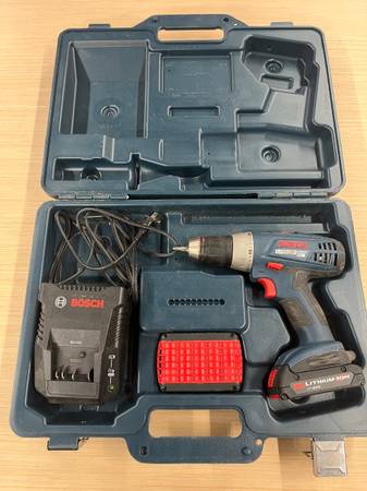 Bosch 36618 18v Drill kit. This kit is used but has not been used very much. Everything works, but I have not used it enough to know how long the batteries last, $20