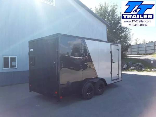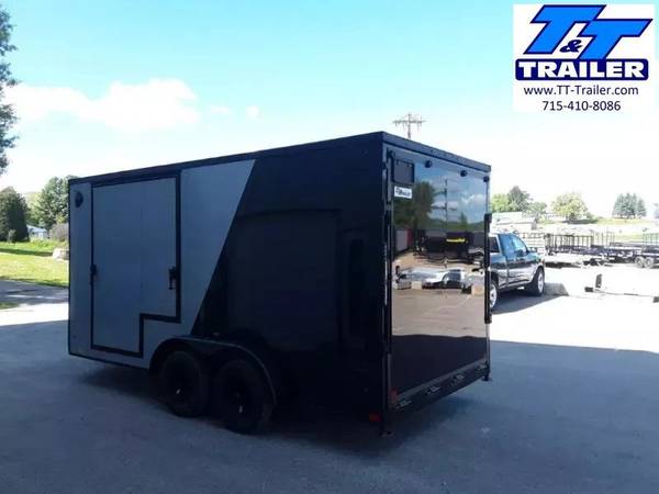 2026 Discovery Rover ET - 7.5' x 16' V Nose Enclosed Trailer - 2 Tone Silver/Black with Blackout Trim