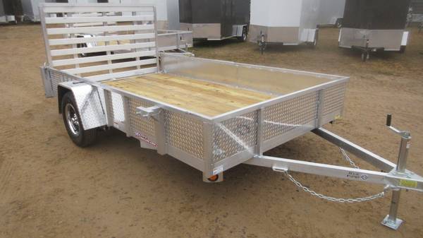 82" x 12' Quality Aluminum Utility/UTV/ATV Trailer (2026 Model), 3500# axle, C-Rated 205/75R15 radial tires, black mod wheels with chrome beauty rings and center caps, E-Z lube hubs, enclosed ATP sides, treated wood deck, tie downs, side step, ATP aluminum fenders, spare tire mount, 48" ramp gate, LED lights and MORE!