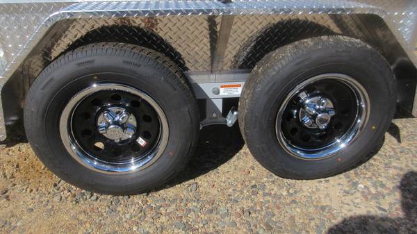 82" x 16' Quality Aluminum Tandem Utility/ATV/UTV Trailer (2026 Model), 2-3500# axles (brakes on 1 axle), 205/75R15 radial tires, black wheels with chrome beauty rings and center caps, E-Z lube hubs, 5 welded tie downs, ATP aluminum fenders with support, sealed wire harness, zinc coated running gear, spare tire mount, 2" x 4" tube drawbars, 2" x 8" treated lumber, ATP across front, triple tongue, ramp gate, side step in front of drivers side fender, 2-5/16" coupler and MORE!