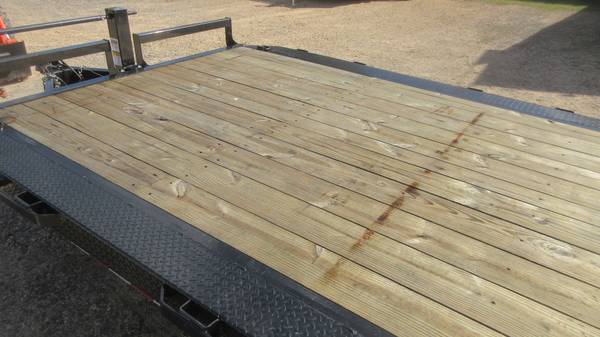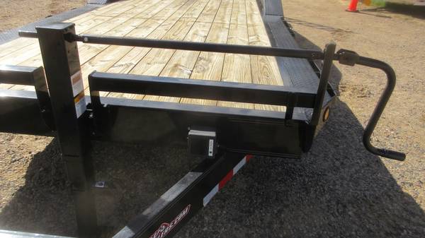 8.5' x 24' (22' + 2' dovetail) Iron Bull Equipment Hauler (2023 Model, 1 Owner), 2-7000# axles with self-adjusting brakes, E-Rated 235/80R16 radial tires, silver mod wheels with chrome center caps, E-Z lube hubs (bearings greased Sept 25'), heavy duty fully wrapped tongue, oil treated 2" deck, HEAVY DUTY drive/over fenders, 12k jack, 5' spring loaded adjustable ramps, 10 stake pockets, 4 heavy duty top mounted d-rings, DOT conspicuity reflective tape, LED clearance lights, LED tail lights and SO MUCH MORE!