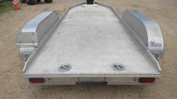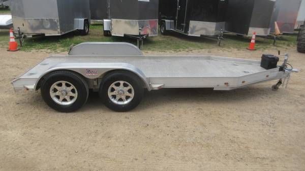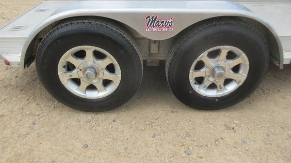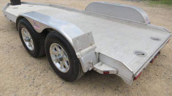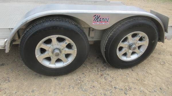 5' x 16' All Aluminum Utility/Motorcycle/Toy Trailer, 2-3500# torsion axles, 225/75R15 radial tires, aluminum wheels, extruded aluminum floor, 6' heavy duty aluminum ramps, 60" between removable fenders, new breakaway battery, supreme wiring, LED's, 2" Bulldog coupler, wheel bearings greased (June 25'), floor tie downs, built to haul around 5000# and more.