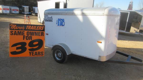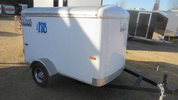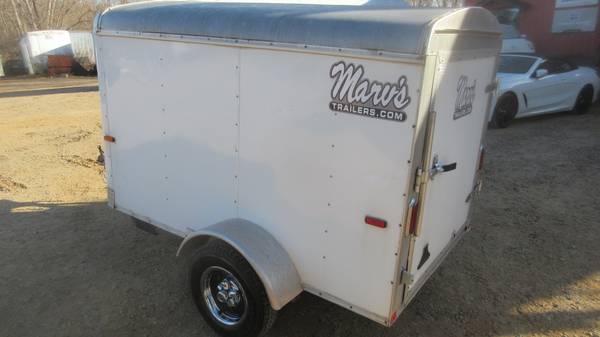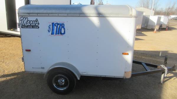 5' x 8' Carry-On Enclosed Trailer (2006 Model), White, 175/80R13 tires, black wheels with chrome beauty rings and center caps, E-Z lube hubs (bearings greased 11/21/25), 1 rear swing door, safety chains, LED lights, ATP stone guard, fresh painted floor and more.