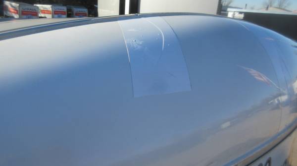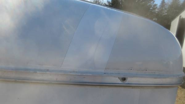 The front fiberglass nose had a few cracks in it so we covered with some heat resistant tape. This is a super lightweight trailer, easy to move by hand. Come check it out in person before it's gone for good!