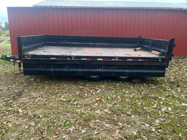 Has ramps for loading equipment and bed has tie down rings in all four corners.