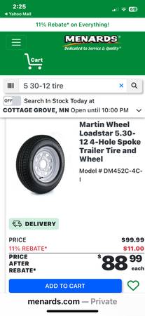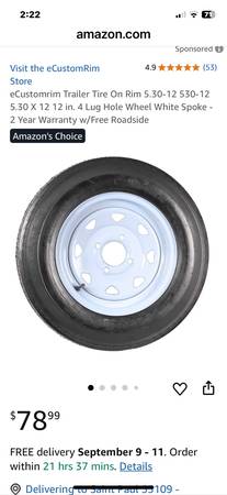 5.30 - 12 trailer tire on 4 bolt steel rim. Used but Good condition . Less than 1/2 the cost of a new one. Yes itβs still available Iβm about 5 minutes north of Hastings Mn $30 cash π΅ only No checks...