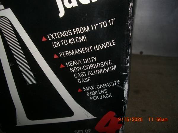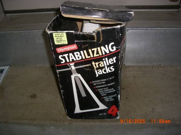 Set of 4 screw trailer jacks. Extend from 11-17"H. Excellent condition. $25. Call or text 651 two33-885nine.