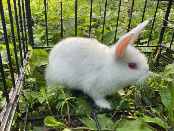 Albino baby bunny rabbit doe(female) Weened and easy to litter box train, great family pet 7weeks old